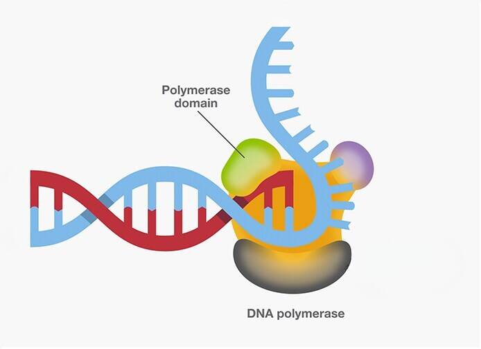 Het voegt nieuwe nucleotiden toe aan een bestaande DNA- of RNA-keten en doet dit volgens het basenparingprincipe van Watson en Crick. Dit houdt in: de specifieke manier waarop stikstofbasen in DNA met elkaar combineren. In DNA vormt adenine (A) altijd een paar met thymine (T), en guanine (G) altijd een paar met cytosine (C)..