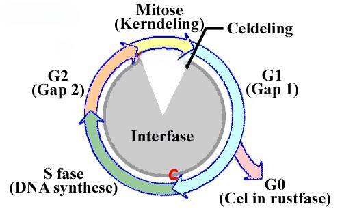 - G2-fase: De cel controleert of alles in orde is voor de celdeling en maakt extra eiwitten en andere benodigdheden aan.