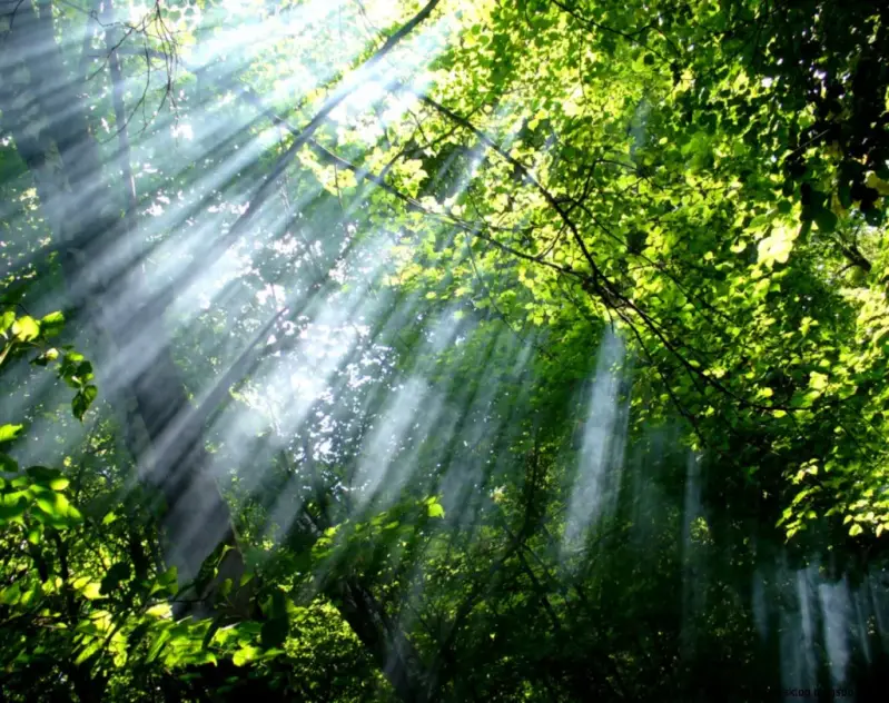 Fotosynthese beleef je in een zonovergoten bos.