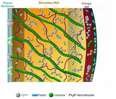 Lignine: een essentieel bestanddeel voor bomen en planten om rechtop te kunnen blijven staan en watertransport door de stengel mogelijk te maken.