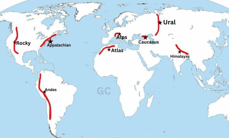 De grootste gebergten van de laatste 250 miljoen jaar