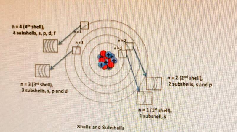 - K-schil (eerste schil): Dit is het laagste energieniveau en bevat maximaal 2 elektronen in de 1s-orbitalen. De 1s-orbitalen zijn het dichtst bij de kern en hebben de laagste energie.