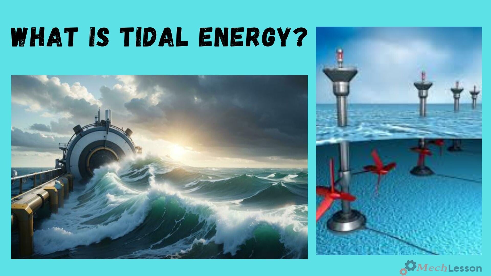 Getijdenenergie wordt verkregen door het hoogteverschil tussen eb en vloed te gebruiken om water in een reservoir of bassin vast te Houden. Wanneer het water weer terugstroomt naar zee, drijft het turbines aan.