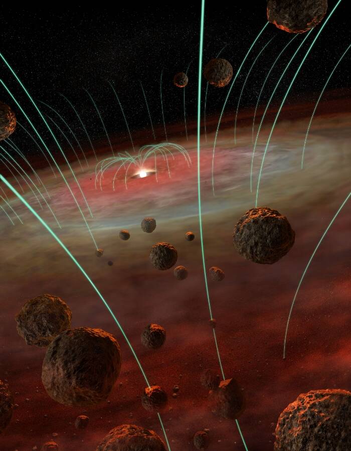 Hetzelfde magnetische veld kan stofkorrels langs ’n soort van 'botsings- en aanhechtingskoersen’ hebben voortgestuwd om vervolgens de eerste kometen, asteroïden en kiemen van rotsachtige planeten te vormen.