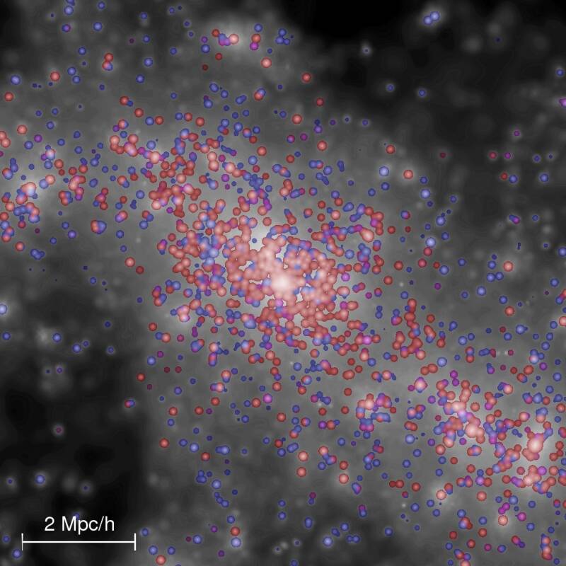 De oranje/rode gebieden zijn warmer terwijl de blauwe gebieden kouder zijn. De blauwe gebieden markeren gebieden die overeenkomen met de 'zaden die uitgroeiden tot sterren en sterrenstelsels'. Want: Om te kunnen samentrekken voor stervorming moet de gaswolk immers behoorlijk afkoelen. In warmere gebieden krijgt de zwaartekracht onvoldoende vat om gaswolken in elkaar te laten storten. Voor dat afkoelen van de gaswolk is stof heel belangrijk.