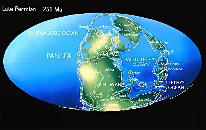 De vorming van Pangea heeft ongeveer 100 miljoen jaar geduurd, beginnend rond 350 miljoen jaar geleden en voltooid rond 250 miljoen jaar geleden. Het supercontinent Pangea, dat bijna alle landmassa's op Aarde omvatte, werd omringd door twee wereldzeeën Panthalassa en Paleo-Tethys.