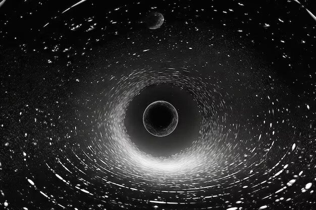 Wanneer je in een zwart gat zou vallen, zou je gezichtsveld drastisch veranderen door de extreme buiging van licht en tijd.