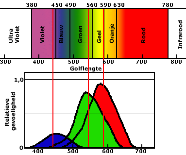 Dit vermogen is te danken aan de werking van de kegeltjes in het netvlies van het oog: