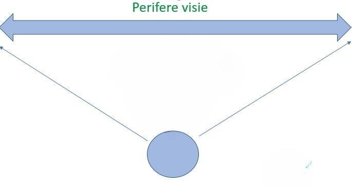 Alles wat buiten je centrale blikveld valt, noem je het perifere blikveld. Kijk je recht vooruit, dan zie je ook nog veel aan de zijkanten. Omdat je dat deel bijna alleen met staafjes waarneemt, zie je er niet scherp en minder kleur. Bewegingen vallen daar juist wel snel op: het geeft ons belangrijke informatie over onze omgeving en speelt een grote rol in onze alertheid en veiligheid. Veel mensen sluiten hun perifere blikveld af, vooral wanneer ze geconcentreerd bezig zijn. Denk aan computeren of op je telefoon kijken.