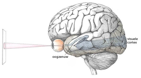 De visuele cortex in de hersenen verwerkt deze informatie tot een samenhangend beeld
