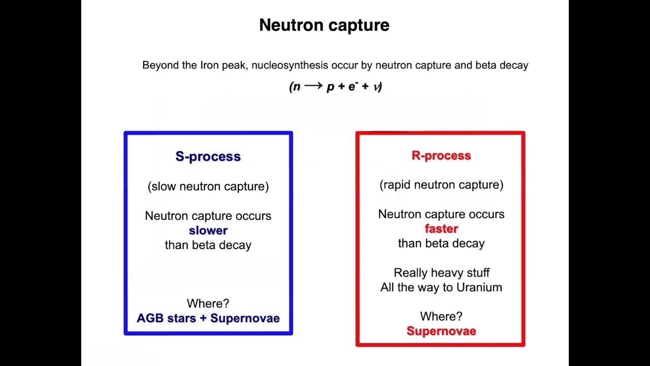 Het r-proces is sneller in het invangen van neutronen, maar het levert extreem instabiele isotopen op die pas later stabiel worden.